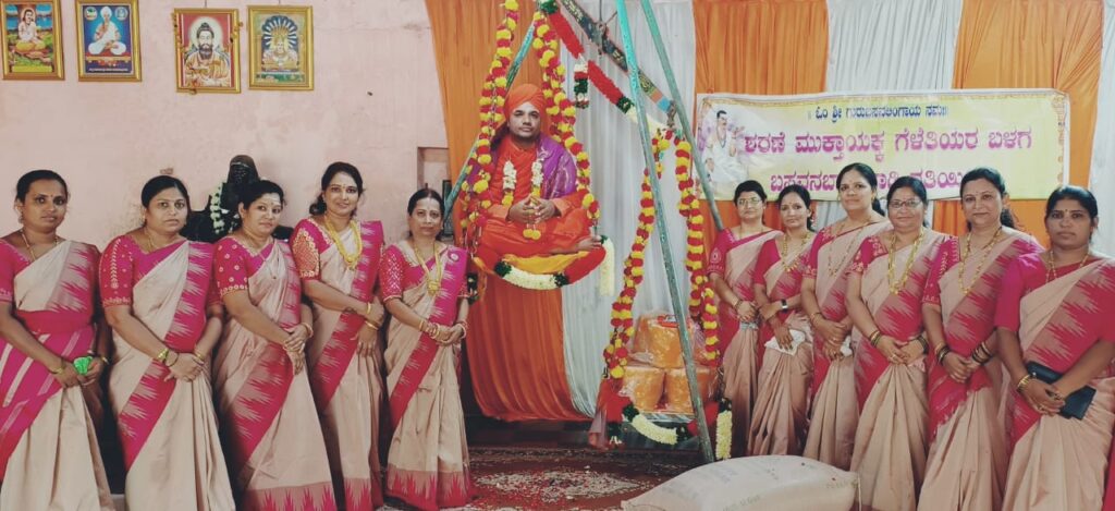 ಬಸವನಬಾಗೇವಾಡಿ: ಪಟ್ಟಣದ ವಿರಕ್ತಮಠದ ಸಿದ್ದಲಿಂಗ ಸ್ವಾಮೀಜಿಯವರ ಪಟ್ಟಾಧಿಕಾರದ ದಶಮಾನೋತ್ಸವದಂಗವಾಗಿ ಶನಿವಾರ ಸ್ಥಳೀಯ ಶರಣೆ ಮುಕ್ತಾಯಕ್ಕ ಗೆಳೆತಿಯರ ಬಳಗದಿಂದ ಶ್ರೀಮಠದಲ್ಲಿ ಆಯೋಜಿಸಿದ್ದ ಕಾರ್ಯಕ್ರಮದಲ್ಲಿ ಬೆಲ್ಲದಿಂದ ತುಲಾಭಾರ ಮಾಡುವ ಮೂಲಕ ಶ್ರೀಗಳಿಗೆ ಭಕ್ತಿ ಸಮರ್ಪಿಸಿದರು. ವಿರಕ್ತಮಠದ ಸಿದ್ದಲಿಂಗ ಸ್ವಾಮೀಜಿಯವರು ಧಾರ್ಮಿಕ ಕಾರ್ಯದೊಂದಿಗೆ ಸಾಮಾಜಿಕ ಕಾರ್ಯದಲ್ಲಿ ತೊಡಗುವ ಮೂಲಕ ಬಸವನಾಡಿಗೆ ಮಾರ್ಗದರ್ಶನ ನೀಡುತ್ತಿದ್ದಾರೆ. ಇಂತಹ ಶ್ರೀಗಳ ಪಟ್ಟಾಧಿಕಾರದ ದಶಮಾನೋತ್ಸವ ಸಂಭ್ರಮ ನಮಗೆ ಹರ್ಷ ತಂದಿದೆ. ಶ್ರೀಗಳ ಕೃಪಾಶೀರ್ವಾದ ಬಸವನಾಡಿಗೆ ಸದಾ ಇರಲೆಂದು ಎಲ್ಲರೂ ಪ್ರಾರ್ಥಿಸಿದರು. ಈ ಸಂದರ್ಭದಲ್ಲಿ ಶೈಲಾ ತೇರದಾಳಮಠ, ಜಯಶ್ರೀ ತೆಗ್ಗಿನಮಠ, ಸ್ವರೂಪರಾಣಿ ರೆಡ್ಡಿ, ಕವಿತಾ ದುಂಬಾಳಿ, ಅಶ್ವಿನಿ ಚಿಕ್ಕೊಂಡ, ಜಯಶ್ರೀ ಪೂಜಾರಿ, ಸುನೀತಾ ಕೊಟ್ರಶೆಟ್ಟಿ, ಲಕ್ಷ್ಮೀ ಜಾಲಗೇರಿ, ತಾರಾ ಮಡಗೊಂಡ, ಸಂಗಮ್ಮ ಮದರಿ, ರೂಪಾ ತೆಗ್ಗಿನಮಠ ಇತರರು ಇದ್ದರು. ಪ್ರತಿಭಾ ರುದ್ರಗೌಡ ಪ್ರಾರ್ಥಿಸಿದರು.