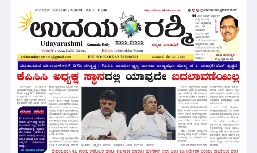 Share Facebook Twitter LinkedIn Email Telegram WhatsApp Udayarashmi kannada daily newspaperUdayarashmi-29-May-2024DownloadBIJAPUR NEWS public public news udaya rashmi Udayarashmi today newspaper udayarashminews.com