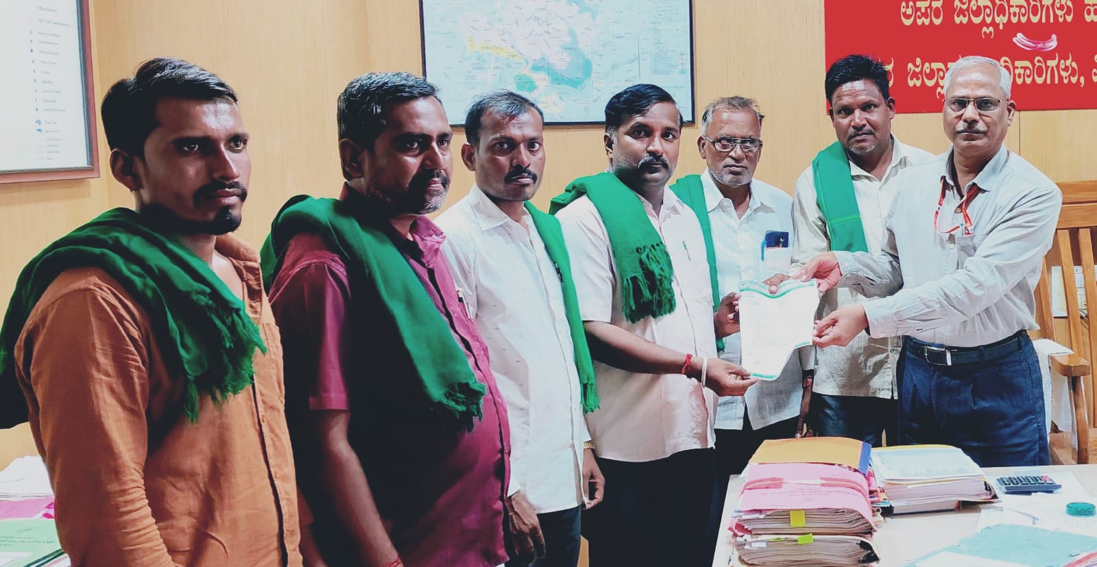 ವಿಜಯಪುರ: ಇತ್ತಿಚಿಗೆ ಮುಂಗಾರು ಹಂಗಾಮಿನ ಕುರಿತು ಕೇಂದ್ರ ಹಾಗೂ ರಾಜ್ಯ ಸರಕಾರ ನೀಡಿರುವ ಪರಿಹಾರದ ಮೊತ್ತದ ಬಗ್ಗೆ ಸಾಕಷ್ಟು ಗೊಂದಲಗಳಿದ್ದು ಅದರ ಬಗ್ಗೆ ಸ್ಪಷ್ಟತೆ ನೀಡಬೇಕೆಂದು ಕರ್ನಾಟಕ ರಾಜ್ಯ ರೈತ ಸಂಘ ಹಾಗೂ ಹಸಿರು ಸೇನೆ ವತಿಯಿಂದ ಅಪರ ಜಿಲ್ಲಾಧಿಕಾರಿ ಮಹದೇವ ಮುರಗಿ ಅವರಿಗೆ ಮನವಿ ಸಲ್ಲಿಸಿ ಇದಕ್ಕೆ ಉತ್ತರ ನೀಡುವಂತೆ ಆಗ್ರಹಿಸಿದರು