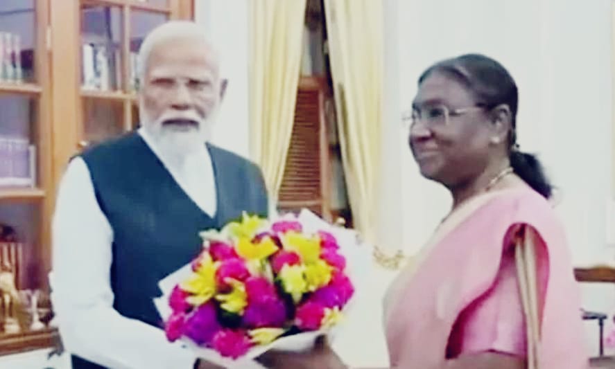 ನವದೆಹಲಿ: ಎನ್ಡಿಎ ನಾಯಕ ನರೇಂದ್ರ ಮೋದಿ ಅವರು ಶುಕ್ರವಾರ ರಾಷ್ಟ್ರಪತಿ ಭವನದಲ್ಲಿ ದ್ರೌಪದಿ ಮುರ್ಮು ಅವರನ್ನು ಭೇಟಿ ಮಾಡಿ, ಕೇಂದ್ರದಲ್ಲಿ ಸರ್ಕಾರ ರಚನೆಗೆ ಹಕ್ಕು ಮಂಡಿಸಿದರು.