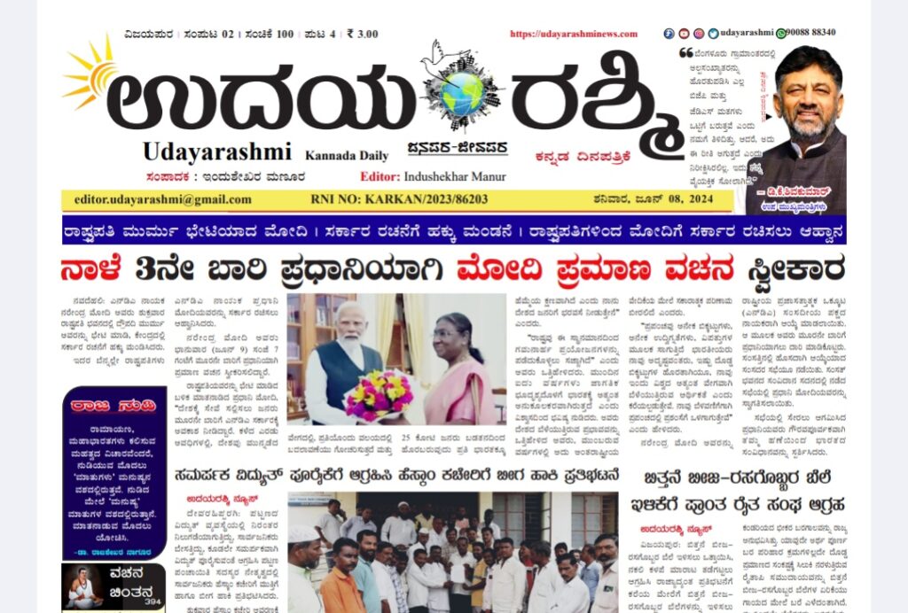 Share Facebook Twitter LinkedIn Email Telegram WhatsApp Udayarashmi kannada daily newspaperUdayarashmi-08-June-2024DownloadBIJAPUR NEWS public public news udaya rashmi Udayarashmi today newspaper udayarashminews.com