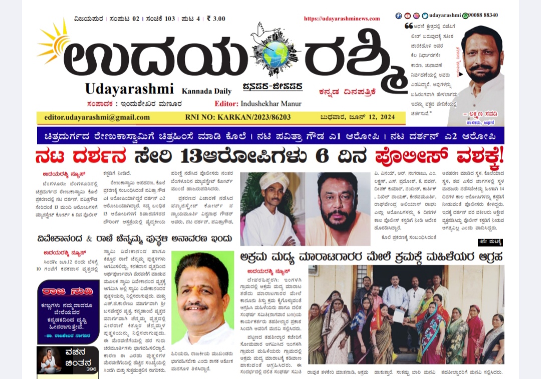 ಉದಯರಶ್ಮಿ ಇಂದಿನ ದಿನಪತ್ರಿಕೆ ಜೂನ್ 12, 2024