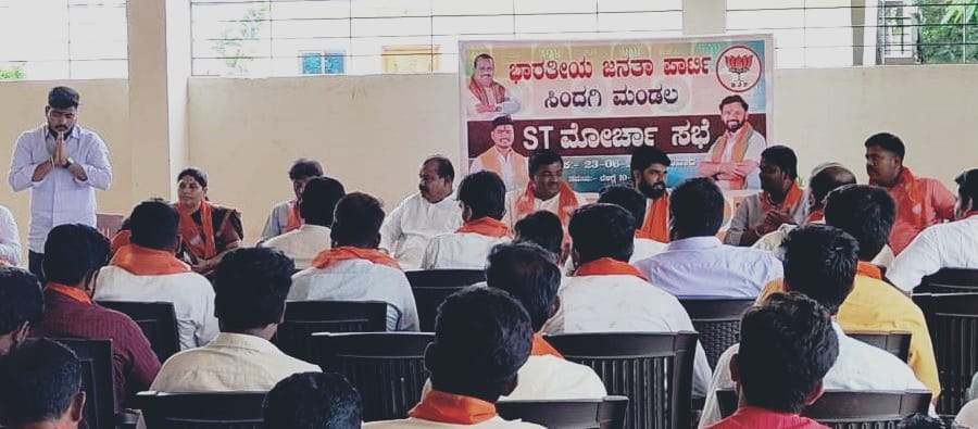 ಸಿಂದಗಿ: ಪಟ್ಟಣದ ಬಿಜೆಪಿ ಕಾರ್ಯಾಲಯದಲ್ಲಿ ಮಹರ್ಷಿ ವಾಲ್ಮೀಕಿ ಅಭಿವೃದ್ದಿ ನಿಗಮದಲ್ಲಿ ನಡೆದ ಅವ್ಯವಹಾರ ವಿರುದ್ದ ಜೂ.೨೮ರಂದು ಫ್ರತಿಭಟನೆ ನಡೆಸಲು ತಾಲೂಕು ಎಸ್.ಟಿ.ಮೋರ್ಚಾ ವತಿಯಿಂದ ಪೂರ್ವಭಾವಿ ಸಭೆ ನಡೆಸಲಾಯಿತು.