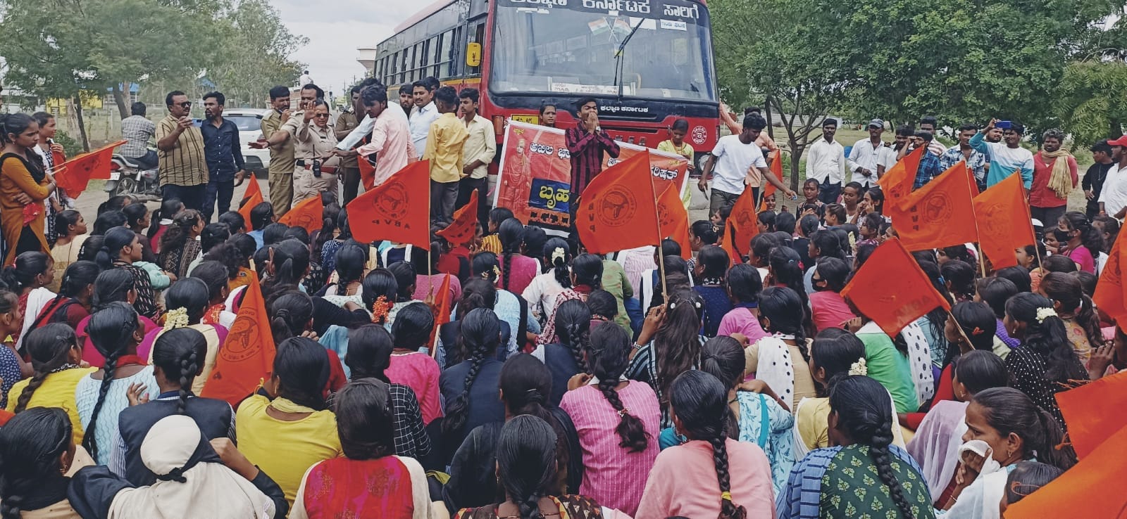 ಪ್ರತಿಭಟನಾಕಾರರು ವಿದ್ಯಾರ್ಥಿಗಳ ಬೇಡಿಕೆ ಪರಿಗಣಿಸದೆ ಇರುವ ಕೆಎಸ್ಆರ್ಟಿಸಿ, ರಾಜ್ಯ ಸರ್ಕಾರ ನಡೆ ಖಂಡಿಸಿ ಘೋಷಣೆ ಕೂಗಿದರು.
