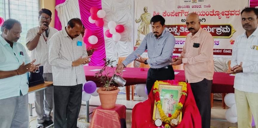 ಪಟ್ಟಣದ ವಿಜಯಪುರ ರಸ್ತೆಯಲ್ಲಿರುವ ಆದರ್ಶ ಶಾಲೆಯಲ್ಲಿ, ತಾಲ್ಲೂಕು ಆಡಳಿತ ವತಿಯಿಂದ ಆಯೋಜಿಸಿದ್ದ ನಾಡುಪ್ರಭು ಕೆಂಪೇಗೌಡ ಜಯಂತಿ ನಿಮತ್ಯವಾಗಿ ಭಾವಚಿತ್ರಕ್ಕೆ ಪುಷ್ಪಾರ್ಚಾಣೆ ಮಾಡಿ ಮಾತನಾಡಿದರು.