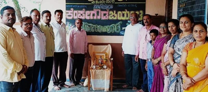 ಈ ವೇಳೆಯಲ್ಲಿ ನಾಡಪ್ರಭು ಕೆಂಪೇಗೌಡರ ಭಾವಚಿತ್ರ ಪೂಜೆಯನ್ನು ಪ್ರಾಥಮಿಕ ಶಾಲೆಯ ಮುಖ್ಯ ಗುರುಗಳಾದ ಎಂ.ಬಿ.ಪೂಜಾರಿ ಹಾಗೂ ಎಚ್.ಎಂ.ಬೋರಾವತ್ ಶಿಕ್ಷಕರುಗಳು ನೇರವೇರಿಸಿದರು.