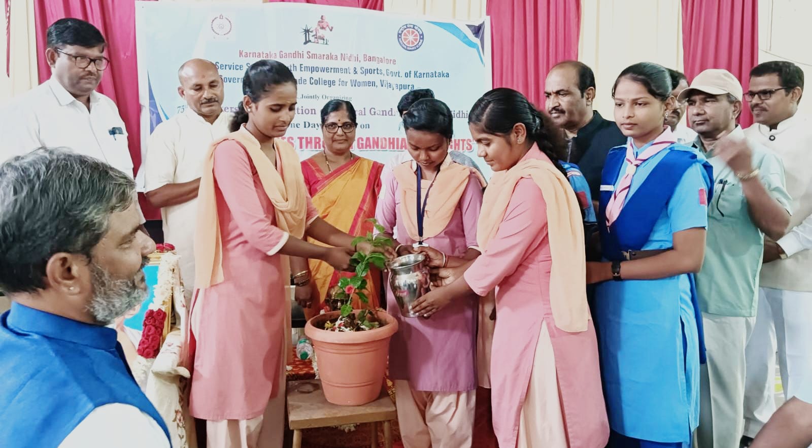 ಸದರಿ ಕಾರ್ಯಕ್ರಮ ಉದ್ಘಾಟಿಸಿ ಭಾಗವಹಿಸಿದ ಕರ್ನಾಟಕ ರಾಜ್ಯ ಮಹಿಳಾ ವಿಶ್ವವಿದ್ಯಾನಿಲಯ ಎನ್ಎಸ್ಎಸ್ ಕಾರ್ಯಕ್ರಮಾಧಿಕಾರಿಗಳು ಹಾಗೂ ಸಮಾಜ-ವಿಜ್ಞಾನಗಳ ಡೀನ್ ಡಾ ಶಾಂತಾದೇವಿ ಮಾತನಾಡಿ, ಮಾನವೀಯ ಮೌಲ್ಯಗಳು ಇಂದಿನ ದಿನಗಳಲ್ಲಿ ಕಾರ್ಯಕ್ರಮಕ್ಕೆ ಮಾತ್ರ ಸೀಮಿತವಾಗಿವೆ ಅವು ಕಾರ್ಯ ರೂಪದಲ್ಲಿ ಬರಬೇಕು. ಗಾಂಧೀಜಿಯವರ ಸತ್ಯ, ಅಹಿಂಸೆ ಹಾಗೂ ಅಪರಿಗ್ರಹ ಎಂಬ ಮೂರು ಮೌಲ್ಯಗಳು ಶ್ರೇಷ್ಠವಾಗಿವೆ ನಾವೆಲ್ಲರೂ ಗಾಂಧೀಜಿಯವರ ಮೌಲ್ಯಗಳನ್ನು ಜೀವನದಲ್ಲಿ ಅಳವಡಿಸಿಕೊಳ್ಳಬೇಕೆಂದು ಕರೆ ನೀಡಿದರು.