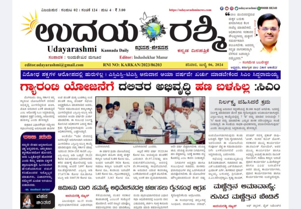 Share Facebook Twitter LinkedIn Email Telegram WhatsApp Udayarashmi kannada daily newspaperUdayarashmi-06-July-2024DownloadBIJAPUR NEWS public public news udaya rashmi Udayarashmi today newspaper udayarashminews.com