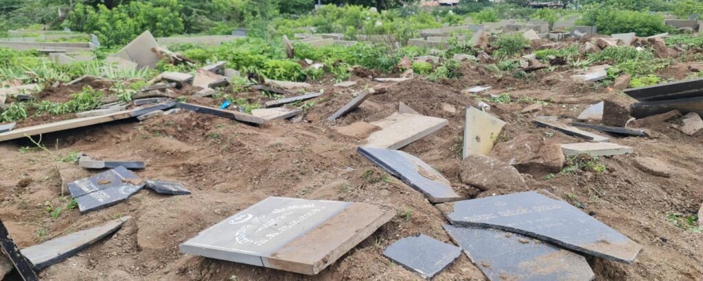 ಮುದ್ದೇಬಿಹಾಳ: ತಮ್ಮ ಜಮೀನನ್ನು ಸ್ವಚ್ಛಗೊಳಿಸಲು ಮುಂದಾದ ಕುಟುಂಬವೊಂದು ಖಬರಸ್ಥಾನದಲ್ಲಿದ್ದ ಮೃತರ ಗೋರಿಗಳ ಪೈಕಿ ಕೆಲವನ್ನು ಒಡೆದು ಹಾಕಿ ಮುಸ್ಲಿಂ ಸಮಾಜಬಾಂಧವರ ಕೆಂಗಣ್ಣಿಗೆ ಗುರಿಯಾದ ಘಟನೆ ಪಟ್ಟಣದ ಕುಂಟೋಜಿ ರಸ್ತೆಯಲ್ಲಿರುವ ಈದಗಾ ಮೈದಾನದ ಹಿಂದಿರುವ ಖಬರಸ್ಥಾನದಲ್ಲಿ ರವಿವಾರ ನಡೆದಿದೆ.