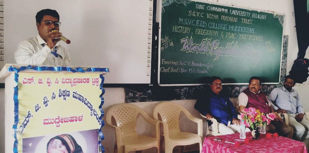 ಮುದ್ದೇಬಿಹಾಳ: ಜಗತ್ತಿನಲ್ಲಿ ಹೆಚ್ಚುತ್ತಿರುವ ಜನಸಂಖ್ಯೆಯನ್ನು ನಿಯಂತ್ರಿಸುವುದು ಪ್ರಸ್ತುತ ದಿನಗಳಲ್ಲಿ ಅತಿ ದೊಡ್ಡ ಸವಾಲಾಗಿ ಪರಿಣಮಿಸಿದೆ ಎಂದು ಎಂಜಿವ್ಹಿಸಿ ಮಹಾವಿದ್ಯಾಲಯದ ಸಹಾಯಕ ಪ್ರಾಧ್ಯಾಪಕರಾದ ಡಾ. ಆರ್.ಎಸ್.ಸಜ್ಜನ ಹೇಳಿದರು.