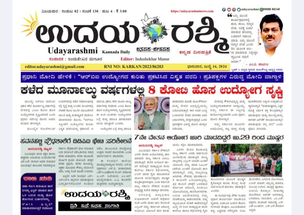 Share Facebook Twitter LinkedIn Email Telegram WhatsApp Udayarashmi kannada daily newspaperUdayarashmi-14-July-2024DownloadBIJAPUR NEWS public public news udaya rashmi Udayarashmi today newspaper udayarashminews.com