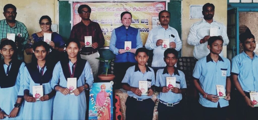 ಫೌಂಡೇಶನ್ ವತಿಯಿಂದ ರಾಷ್ಟ್ರ ಜಾಗೃತಿ ಪುಸ್ತಕಗಳನ್ನು ವಿದ್ಯಾರ್ಥಿಗಳಿಗೆ ಪ್ರಾಚಾರ್ಯ ಡಾ.ಜಿ ಡಿ ಅಕಮಂಚಿ ವಿತರಿಸಿ, ಮಾತನಾಡಿ, ಸ್ವಾಮಿ ವಿವೇಕಾನಂದರ ಚಿಂತನೆಗಳು ಎಲ್ಲ ವರ್ಗ, ಜಾತಿ, ಧರ್ಮದ ಜನರಿಗೆ ಸದಾ ಪ್ರೇರಣೆ ನೀಡುತ್ತವೆ ಎಂದು ಹೇಳಿದರು.