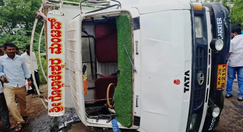 ಟೆಂಪೋ ಪಲ್ಟಿ: ೩೦ಕ್ಕೂ ಅಧಿಕ ಜನರಿಗೆ ಗಾಯ