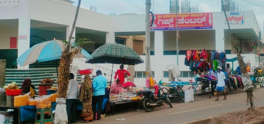 ಪಟ್ಟಣದಲ್ಲಿ ಸೋಮವಾರ ಸಂತೆ ದಿನ ಇರುವದರಿಂದ ಮೆಗಾಮಾರುಕಟ್ಟೆಯ ಆವರಣಗೋಡೆ ತೆರವುಗೊಳಿಸಿದ ಜಾಗೆಯಲ್ಲಿ ಕೆಲ ಬೀದಿ ವ್ಯಾಪಾಸ್ಥರು ತಮ್ಮ ವ್ಯಾಪಾರ ಮಾಡುತ್ತಿರುವದು ಕಂಡುಬಂದಿತ್ತು.