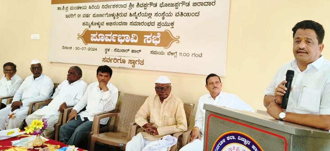ಪಟ್ಟಣದ ತಾಲೂಕ ಶಿಕ್ಷಣ ಪ್ರಸಾರಕ ಮಂಡಳಿಯ ಸಿ.ಎಂ. ಮನಗೂಳಿ ಕಲಾ ಮಹಾವಿದ್ಯಾಲಯದ ಸಭಾಭವನದಲ್ಲಿ ಮಂಗಳವಾರ ನಡೆದ ಸಂಸ್ಥೆಯ ಹಿರಿಯ ನಿರ್ದೇಶಕ ಶಿವಪ್ಪಗೌಡ ಬಿರಾದಾರ್ ಅವರ ಅಭಿನಂದನಾ ಸಮಾರಂಭದ ಪೂರ್ವಭಾವಿ ಸಭೆಯ ಅಧ್ಯಕ್ಷತೆಯನ್ನು ವಹಿಸಿ ಮಾತನಾಡಿದ ಅವರು, ಶಿವಪ್ಪಗೌಡ ಬಿರಾದಾರ ಅವರು ಶಿಕ್ಷಣ, ಸಾಮಾಜಿಕ, ಸಹಕಾರಿ ಕ್ಷೇತ್ರದಲ್ಲಿ ಹಲವಾರು ಸಾಧನೆ ಮಾಡಿದಂತವರು. ೯೧ವರ್ಷಗಳ ಜೀವನವನ್ನು ಸಾಗಿಸುತ್ತಿರುವ ಅವರು ಸಂಸ್ಥೆಯ ಬೆಳವಣಿಗೆಗೆ ಸದಾ ಶ್ರಮಿಸಿದಂತವರು. ಮುಂಬರುವ ದಿನಗಳಲ್ಲಿ ಅವರಿಗೊಂದು ಅಭಿನಂದನಾ ಗ್ರಂಥ ರಚಿಸುವ ಮೂಲಕ ಅರ್ಥಪೂರ್ಣವಾಗಿ ಅಭಿನಂದನಾ ಸಮಾರಂಭವನ್ನು ಏರ್ಪಡಿಸಲಾಗುವುದು ಎಂದರು.