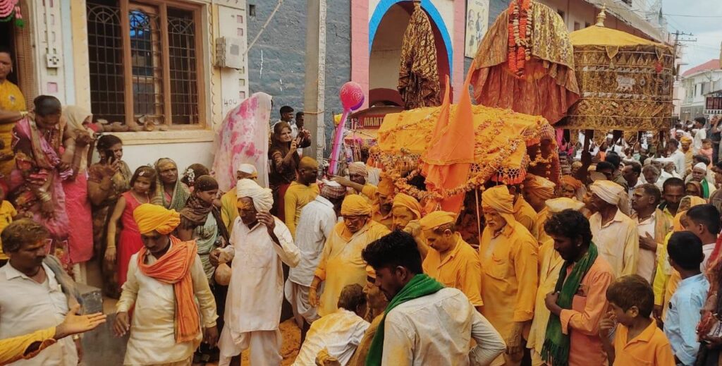 ಗೂಗದಡ್ಡಿ, ಸಾರವಾಡ ಗ್ರಾಮದ ಡೊಳ್ಳಿನ ವಾಲಗ ಹಾಗೂ ಗೊಂಬೆ ಕುಣಿತದೊಂದಿಗೆ, ಸಕಲ ವಾದ್ಯ ಮೇಳದೊಂದಿಗೆ ಮೆರವಣಿಗೆ ಮಾಡುತ್ತ, ಹಾಲ ಹಳ್ಳಕ್ಕೆ ಹೋಗಿ ಅಲ್ಲಿ ಗಂಗೆ ಸೀತಾಳ ಮಾಡಿಕೊಂಡು ಬೆಳಿಗ್ಗೆ ಬಜಾರದಲ್ಲಿರುವ ದೇವರ ಕಟ್ಟೆಗೆ ಆಗಮನವಾಯಿತು. ಅಲ್ಲಿ ಮಹಿಳೆಯರಾದಿಯಾಗಿ ಎಲ್ಲ ಭಕ್ತರು ದರ್ಶನ ಪಡೆದು, ಆರತಿ ಬೆಳಗಿ, ಕಾಯಿ ಕರ್ಪೂರ ನೈವೈದ್ಯ ಅರ್ಪಿಸಿದರು. ನಂತರ ಭವ್ಯ ಮೆರವಣಿಗೆ ಮೂಲಕ ಮೂಲ ದೇವಸ್ಥಾನಕ್ಕೆ ಬಂದು ತಲುಪುವ ಮಾರ್ಗದಲ್ಲಿ ಭಕ್ತ ಸಮೂಹ ಭಂಡಾರ, ಬರ್ಫಿ, ಉಣ್ಣೆ ಎಸೆಯುವ ದೃಶ್ಯ ಮನಮೋಹಕವಾಗಿತ್ತು.