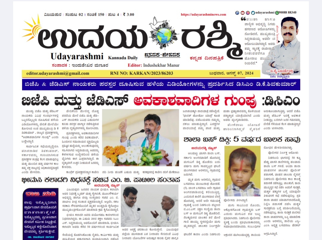 Share Facebook Twitter LinkedIn Email Telegram WhatsApp Udayarashmi kannada daily newspaperUdayarashmi-07-Aug-2024DownloadBIJAPUR NEWS public public news udaya rashmi Udayarashmi today newspaper udayarashminews.com