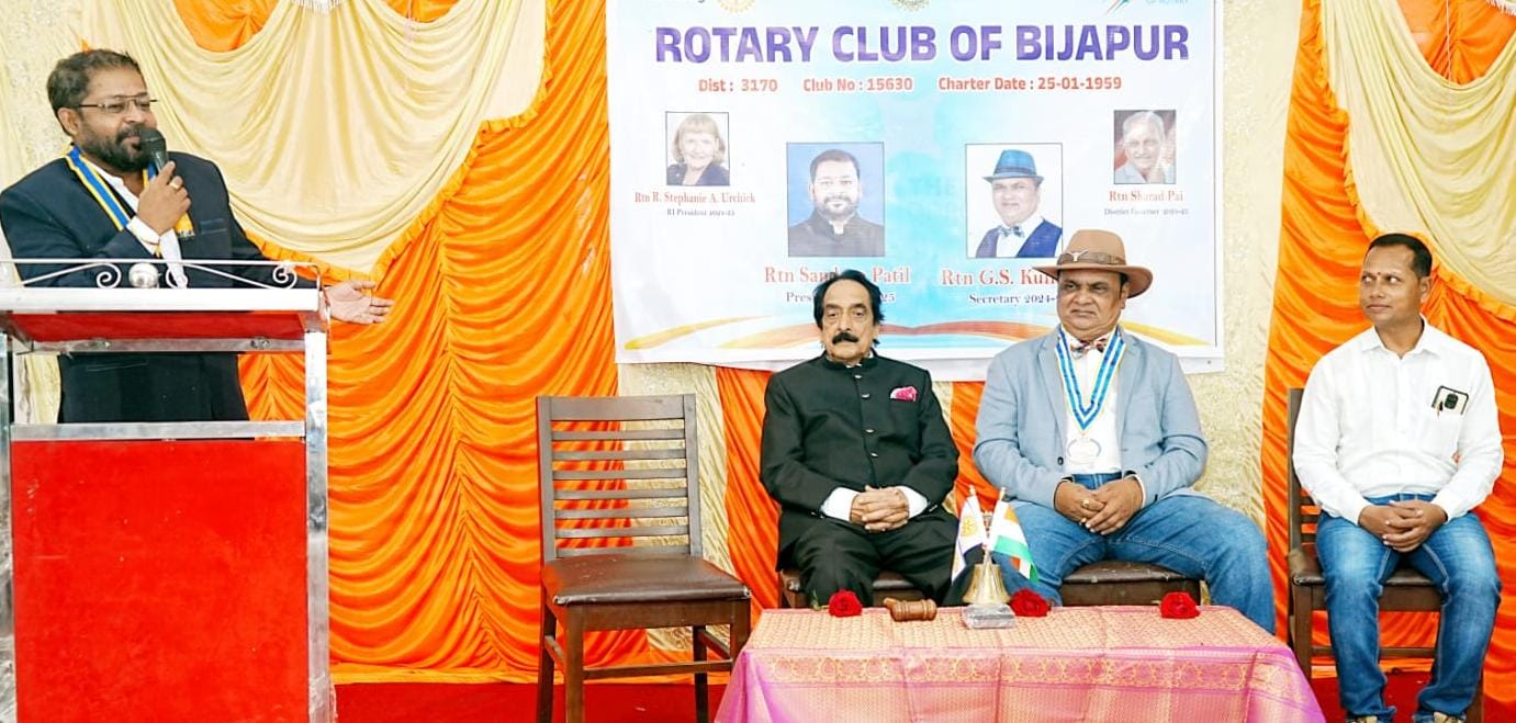 ವಿಜಯಪುರ: ನಗರದಲ್ಲಿ 1959 ರಲ್ಲಿ ಪ್ರಾರಂಭವಾದ ಪ್ರತಿಷ್ಠಿತ ಹಾಗೂ ಪುರಾತನ ಕ್ಲಬ್ ಜಗತ್ತಿನಲ್ಲಿ ರೋಟರಿ ಸಂಸ್ಥೆಯ ವಿವಿಧ ವೃತ್ತಿಯಲ್ಲಿ ಸೇವೆ ಸಲ್ಲಿಸುತ್ತಿರುವಕೋಟ್ಯಾಂತರ ಸದಸ್ಯರು, ತಮ್ಮ ತನುಮನ ಧನದೊಂದಿಗೆ ಹಾಗೂ ಪ್ರಬಲ ಇಚ್ಛಾಶಕ್ತಿಯೊಂದಿಗೆಸಮಾಜದಲ್ಲಿ ಬದಲಾವಣೆ ತರುತ್ತಿರುವುದು ಉತ್ತಮವಾದ ಬೆಳವಣಿಗೆಯಾಗಿದೆ. ಕಾರಣ ಪ್ರತಿಯೊಬ್ಬರು ಪ್ರತಿವ್ಯಕ್ತಿಗೆ ಸಹಾಯ ಮಾಡುವ ಮೂಲಕ ತಮ್ಮ ಅಳಲು ಸೇವೆ ಸಲ್ಲಿಸಬೇಕೆಂದು ರೋಟರಿ ಸಂಸ್ಥೆ ಪದಗ್ರಹಣಾಧಿಕಾರಿ ಡಾ.ವಾಸುದೇವ ಬೆಂಡಿಗೇರಿ ಹೇಳಿದರು.