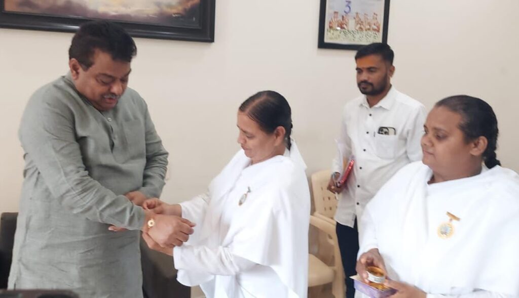 ವಿಜಯಪುರ: ಬ್ರಹ್ಮಕುಮಾರಿ ಈಶ್ವರಿ ವಿಶ್ವವಿದ್ಯಾಲಯ ಸಹೋದರಿಯರು ಕೈಗಾರಿಕೆ, ಮೂಲಸೌಕರ್ಯ ಅಭಿವೃದ್ಧಿ ಹಾಗೂ ಜಿಲ್ಲಾ ಉಸ್ತುವಾರಿ ಸಚಿವ ಎಂ. ಬಿ. ಪಾಟೀಲ ಅವರನ್ನು ಭೇಟಿ ಮಾಡಿ ರಕ್ಷಾ ಬಂಧನದ ಅಂಗವಾಗಿ ಶುಭ ಕೋರಿದರು.