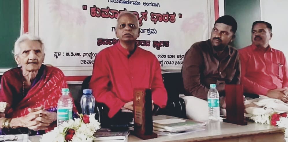 ರವಿವಾರ ನಗರದ ಬಿಡಿಇ ಸೊಸೈಟಿಯಲ್ಲಿ ಅಖಿಲ ಭಾರತೀಯ ‘ಸಾಹಿತ್ಯ ಪರಿಷದ್(ರಿ) ವಿಜಯಪುರ’ ಗುರುಪೂರ್ಣಿಮ ಅಂಗವಾಗಿ ಆಯೋಜಿಸಿದ ‘ಕುಮಾರವ್ಯಾಸ ಭಾರತ ಗಮಕ’ ಕಾರ್ಯಕ್ರಮದಲ್ಲಿ ಹಿರಿಯ ಗಮಕಿ ಶಾಂತಾಬಾಯಿ ಕೌತಳಾ ಕುಮಾರವ್ಯಾಸ ಭಾರತದ ವಿರಾಟ ಪರ್ವದ ಕಾವ್ಯವನ್ನು ಗಾಯನ ಮಾಡಿದರು. ಕಲ್ಯಾಣರಾವ್ ದೇಶಪಾಂಡೆ ಅದನ್ನು ವ್ಯಾಖ್ಯಾನಿಸಿದರು.