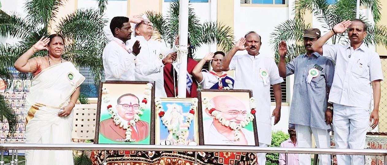 ಜ್ಞಾನ ಭಾರತಿ ಶಾಲೆ: ಪಟ್ಟಣದ ಜ್ಞಾನ ಭಾರತಿ ವಿದ್ಯಾಮಂದಿರದಲ್ಲಿ ಶ್ರೀಶೈಲಗೌಡ ಬಿರಾದಾರ ಮಾಗಣಗೇರಿ ಅವರು ಧ್ವಜಾರೋಹಣ ನೆರವೇರಿಸಿ, ಮಹಾತ್ಮ ಗಾಂಧೀಜಿ ಹಾಗೂ ಡಾ. ಬಿ.ಆರ್.ಅಂಬೇಡ್ಕರ್ರವರ ಭಾವ ಚಿತ್ರಕ್ಕೆ ಪುಷ್ಪ ನಮನ ಸಲ್ಲಿಸಲಾಯಿತು.