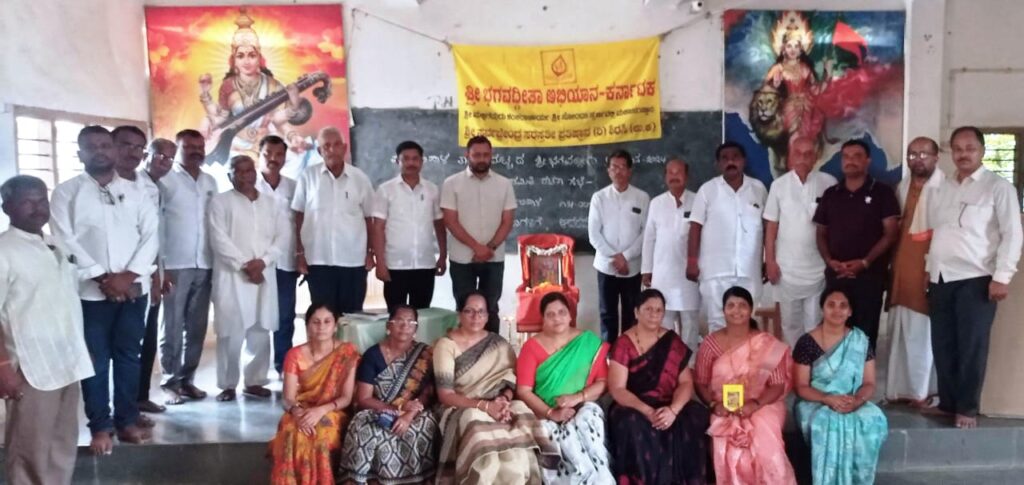ಮುದ್ದೇಬಿಹಾಳ: ಶ್ರೀ ಸರ್ವಜ್ಞೇಂದ್ರ ಸರಸ್ವತಿ ಪ್ರತಿಷ್ಠಾನ ಶ್ರೀಮಜ್ಜಗದ್ಗುರು ಶಂಕರಾಚಾರ್ಯ ಶ್ರೀ ಸೋಂದಾ ಸ್ವರ್ಣವಲ್ಲೀ ಸಂಸ್ಥಾನ ಶಿರಸಿಯ ಯತಿವರೇಣ್ಯರಾದ ಶ್ರೀಮಜ್ಜಗದ್ಗುರು ಶಂಕರಾಚಾರ್ಯ ಶ್ರೀಮದ್ ಗಂಗಾಧರೇಂದ್ರ ಸರಸ್ವತಿ ಮಹಾಸ್ವಾಮಿಗಳು ಆಯೋಜಿಸಿರುವ ಭಗವದ್ಗೀತಾ ಅಭಿಯಾನ ಕರ್ನಾಟಕ-೨೦೨೪ನ್ನು ಮುದ್ದೇಬಿಹಾಳ ತಾಲೂಕಿನಾದ್ಯಂತ ಸಂಘಟಿಸುವ ಸಲುವಾಗಿ ತಾಲೂಕಾ ಕಾರ್ಯಕಾರಿ ಸಮಿತಿಯನ್ನು ರಚಿಸಲಾಯಿತು.