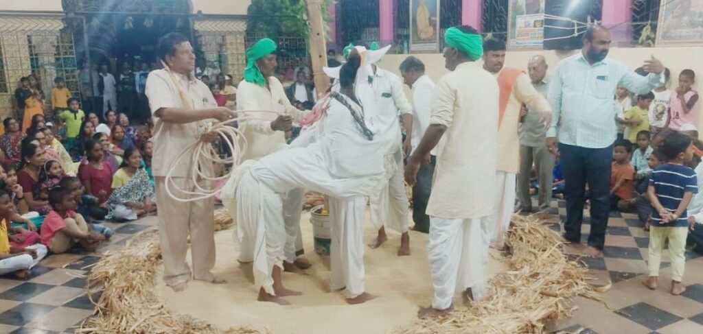 ಆಲಮಟ್ಟಿ: ಆಧ್ಯಾತ್ಮಿಕ ಪುರಾಣ ಪ್ರವಚನದಲ್ಲಿ ಜೋಳದ ರಾಶಿ ಸುಗ್ಗಿಯೊಂದರ ನೈಜ ಚಿತ್ರಣ ಮನೋಜ್ಞವಾಗಿ ಇಲ್ಲಿ ಮೂಡಿಬಂತು. ಭಾವುಕತೆಯಿಂದ ಈ ದೃಶ್ಯ ವೈಭವ ಜನತೆ ಕಣ್ತುಂಬಿಸಿಕೊಂಡು ಭಕ್ತಿನಾದದಲ್ಲಿ ತನ್ಮಯರಾದರು !