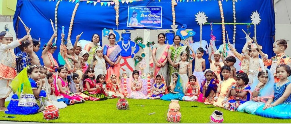 ವಿಜಯಪುರ: ನಗರದ ಗೀತಾಂಜಲಿ ಮಾದರಿ ಶಾಲೆಯಲ್ಲಿ ಶ್ರೀಕೃಷ್ಣ ಜನ್ಮಾಷ್ಟಮಿಯನ್ನು ಆ.26ರಂದು ಬಹಳ ಅದ್ದೂರಿಯಿಂದ ಆಚರಿಸಲಾಯಿತು.