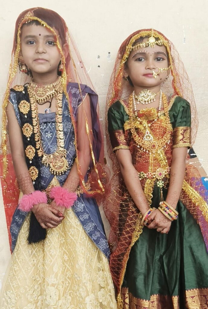 ಸಿಂದಗಿ: ಪಟ್ಟಣದ ಸೋಂಪುರ ರಸ್ತೆಯಲ್ಲಿರುವ ಶ್ರೀಗುರು ಕೃಪಾ ಆಂಗ್ಲ ಮಾಧ್ಯಮ ಶಾಲೆಯ ೧ನೆಯ ತರಗತಿಯ ವಿದ್ಯಾರ್ಥಿನಿ ಸಾಹಿತ್ಯ ಮಹಾಂತೇಶ ನೂಲಾನವರ ಹಾಗೂ ಎಲ್ಕೆಜಿಯ ಪ್ರೀತಿ ರಾಧಾ ವೇಷದಲ್ಲಿ ಸಂಭ್ರಮಿಸಿದರು.