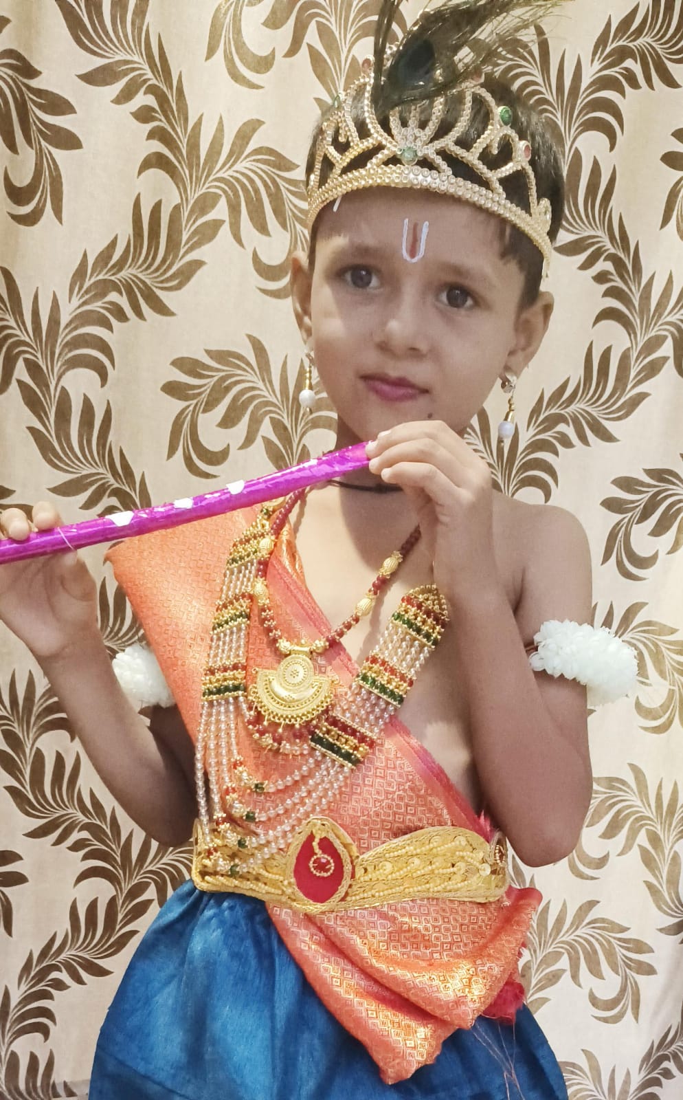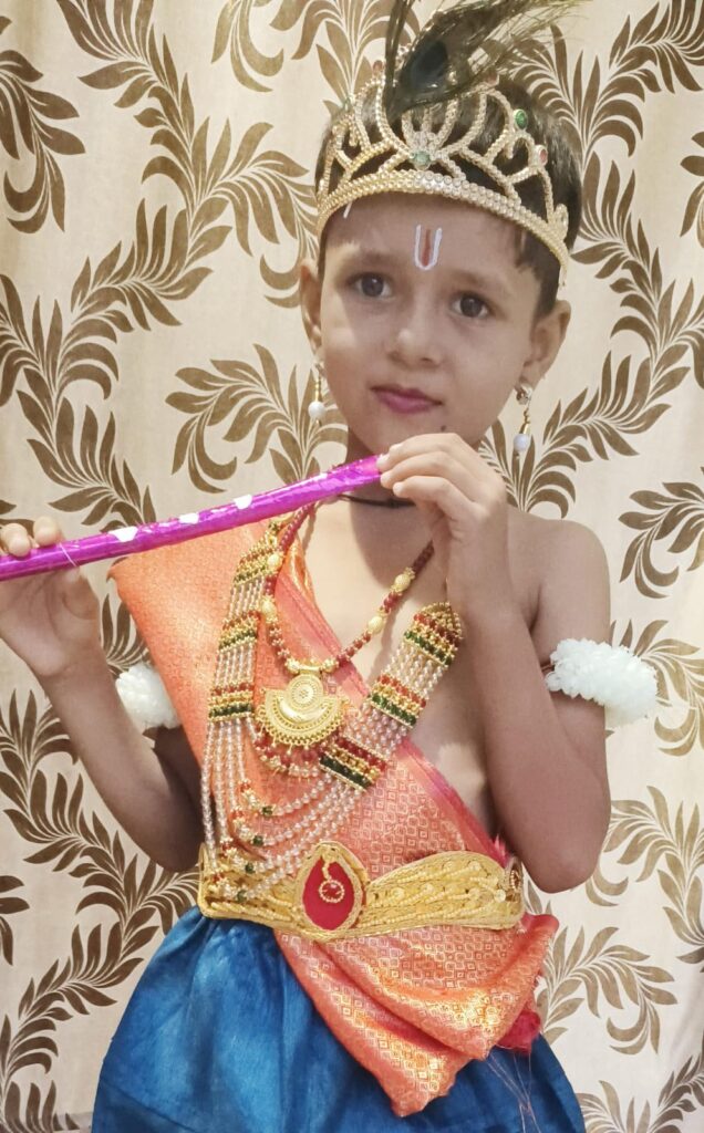 ಸಿಂದಗಿ: ಪಟ್ಟಣದ ಸೋಂಪುರ ರಸ್ತೆಯ್ಲಲಿರುವ ಶ್ರೀಗುರು ಕೃಪಾ ಆಂಗ್ಲ ಮಾಧ್ಯಮ ಶಾಲೆಯ ೩ನೆಯ ತರಗತಿಯ ವಿದ್ಯಾರ್ಥಿ ಸಾತ್ವೀಕ ಮಹಾಂತೇಶ ನೂಲಾನವರ ಶ್ರೀಕೃಷ್ಣನ ವೇಷದಲ್ಲಿ ಕಾಣಿಸಿಕೊಂಡನು.