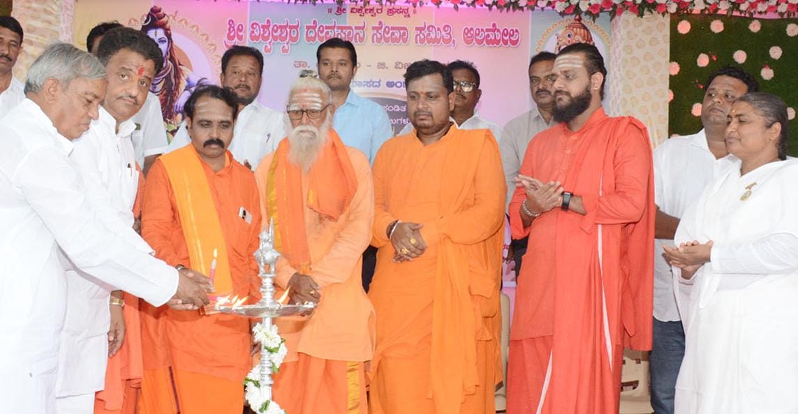ಸೋಮವಾರ ಪಟ್ಟಣದ ವಿಶ್ವೇಶ್ವರ ದೇವಸ್ಥಾನದಲ್ಲಿ ಶ್ರಾವಣ ಮಾಸದ ಅಂಗವಾಗಿ ಹೊಮ್ಮಿಕೊಂಡಿದ್ದ ಪುರಾಣ ಪ್ರವಚನ ನಿಮಿತ್ಯ ಸೋಮವಾರ ರೈತರ ನವ ಬಂಡಿ ಉತ್ಸವ ಹಾಗೂ ದೇವಸ್ಥಾನದ ನೂತನ ಮಹಾದ್ವಾರ ಉದ್ಘಾಟನಾ ಸಮಾರಂಭದ ಸಾನಿದ್ಯ ವಹಿಸಿ ಮಾತನಾಡಿದರು.