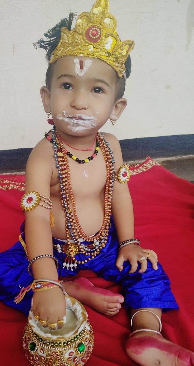 ಶ್ರೀ ಕೃಷ್ಣ ಜನ್ಮಾಷ್ಟಮಿ ಪ್ರಯುಕ್ತ ಬಾಗಲಕೋಟೆ ಜಿಲ್ಲೆ ಬೀಳಗಿ ನಗರದ ಸ್ವಾಮಿ ವಿವೇಕಾನಂದ ಆಂಗ್ಲ ಮಾದ್ಯಮ ಪ್ರೌಢಶಾಲೆಯ ಶಿಕ್ಷಕಿ ಶ್ರೀಮತಿ ಅನಿತಾ ಮುತ್ತು ಲಮಾಣಿ ಅವರ ಸುಪುತ್ರ ವಿರಾಜ್ ಲಮಾಣಿ ಕೃಷ್ಣನ ವೇಷಭೂಷಣ ಧಾರೆಯಲ್ಲಿ ಮಿನುಗಿದ್ದು ಹೀಗೆ !