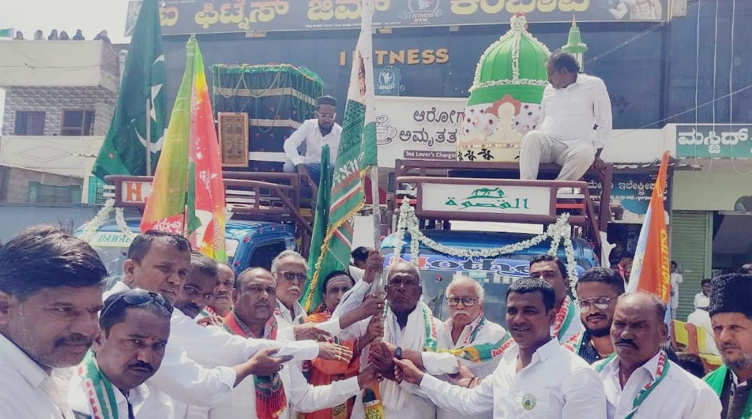 ಪವಿತ್ರ ಮೆಕ್ಕಾ ಮದೀನಾ ಸ್ಥಬ್ದಚಿತ್ರ ಮೆರವಣಿಗೆಗೆ ಮಾಜಿ ಜಿಪಂ ಅಧ್ಯಕ್ಷೆ ಸಿದ್ದನಗೌಡ ಪೋಲೀಸ್ ಪಾಟೀಲ್ ಚಾಲನೆ ನೀಡಿದರು.