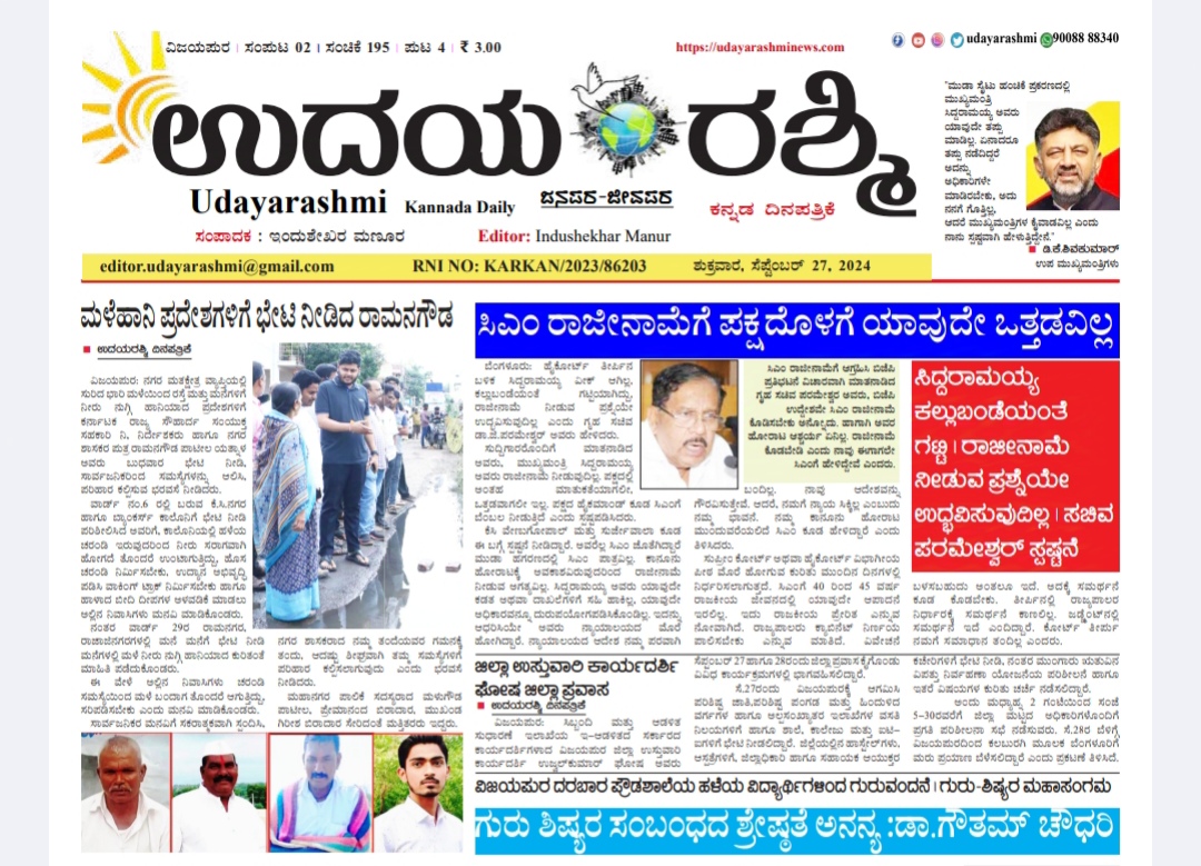 ಉದಯರಶ್ಮಿ ಇಂದಿನ ದಿನಪತ್ರಿಕೆ ಸೆಪ್ಟೆಂಬರ್ 27, 2024