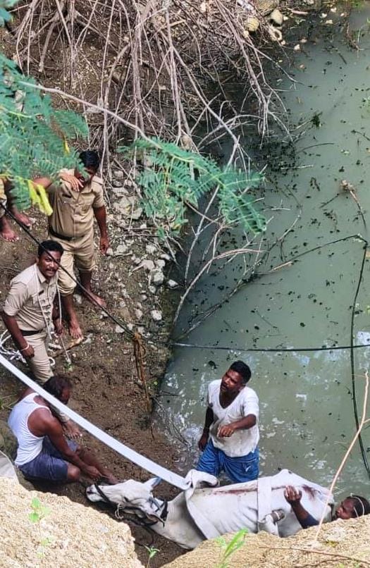 ಕಾಸೀಮಸಾಬ ಎಂಬುವರಿಗೆ ಸೇರಿದ್ದ ಜಮೀನಿನ ಸುಮಾರು ೫೦ ಅಡಿ ಆಳವಿರುವ ಭಾವಿಯಲ್ಲಿ ಹಸು ಬಿದ್ದಿದೆ. ಅದನ್ನು ಕಂಡ ಹಲವರು ಅಗ್ನಿಶಾಮಕ ಸಿಬ್ಬಂದಿಗೆ ಕರೆ ಮಾಡಿ ತಿಳಿಸಿದ್ದಾರೆ. ಅಗ್ನಿಶಾಮಕ ಸಿಬ್ಬಂದಿಗಳಾದ ಸುಭಾಷ ರಾಠೋಡ, ಸಿದ್ದಣ್ಣ ಪೊಲೇಶಿ, ಸಂತೋಷ ಲಮಾಣಿ, ಮಹೇಶ ಕರಡ್ಡಿ, ಪ್ರಕಾಶ ಸುಬ್ಬನಗೋಳ, ಶಕೀಲ ಅವಟಿ, ಮಂಜುನಾಥ ಬಳಿಗಾರ, ರವೀಂದ್ರ ರತ್ನಾಕರ ಮತ್ತು ೧೧೨ ಸಿಬ್ಬಂದಿ ಸಿಕಂದರ ಮಸಳಿ ಮತ್ತು ಯಲ್ಲಪ್ಪ ಭಜಂತ್ರಿ ಗ್ರಾಮಸ್ಥರ ಸಹಾಯದಿಂದ ಸೂಕ್ತ ಕಾರ್ಯಾಚರಣೆ ನಡೆಸಿ ಹಸುವನ್ನು ಸುರಕ್ಷಿತವಾಗಿ ಮೇಲಕ್ಕೆತ್ತಿ ರಕ್ಷಿಸಿದ್ದಾರೆ. ಇವರ ಕಾರ್ಯಕ್ಕೆ ಗ್ರಾಮಸ್ಥರು ಮೆಚ್ಚುಗೆ ವ್ಯಕ್ತಪಡಿಸಿದ್ದಾರೆ.
