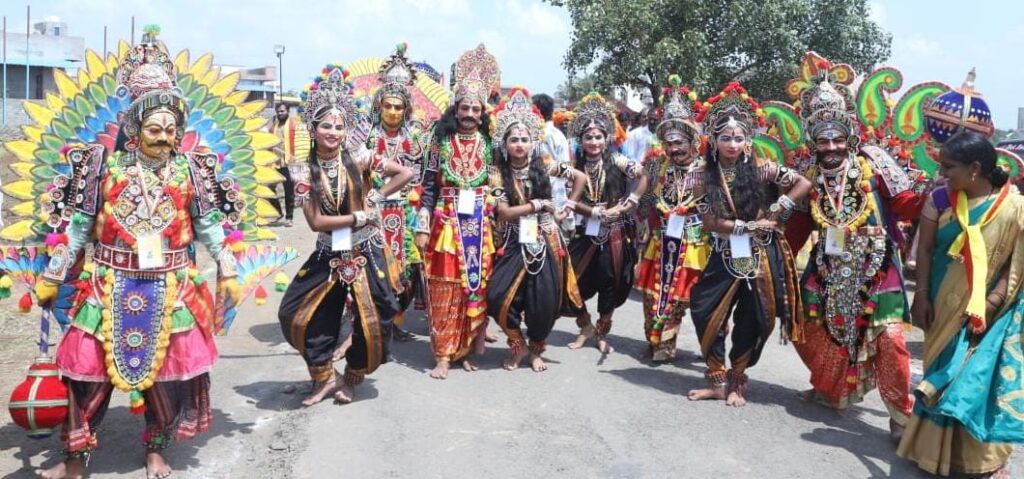 ಇದಕ್ಕೂ ಮೊದಲು ಗುಡ್ಡಾಪುರ ದಾನಮ್ಮದೇವಿ ದೇವಸ್ಥಾನದಿಂದ ವೇದಿಕೆಯವರೆಗೆ ಡೊಳ್ಳು ಕುಣಿತ, ಕರಡಿ ಮಜಲು, ವೀರಗಾಸೆ, ತಾಸೆ ವಾದನ, ಜಗ್ಗಲಗಿ, ನಂದಿ ಕೋಲು, ಹಾಲಕ್ಕಿ ಸುಗ್ಗಿ ಕುಣಿತ, ಸತ್ತಿಗೆ ಕುಣಿತ, ಗೊಂಬೆ ಕುಣಿತದ ವಿವಿಧ ಜಾನಪದ ಕಲಾ ತಂಡಗಳಿಂದ ಮೆರವಣಿಗೆ ನಡೆಯಿತು.