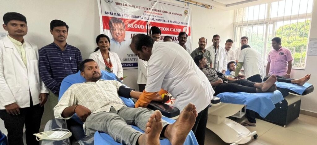 ಸೋಮವಾರ ನಗರದ ಬಿ.ಎಲ್.ಡಿ.ಇ ಆಸ್ಪತ್ರೆಯ ರಕ್ತ ಭಂಡಾರದಲ್ಲಿ ಶ್ರೀ ಬಿ. ಎಂ. ಪಾಟೀಲ ನರ್ಸಿಂಗ್ ಮಹಾವಿದ್ಯಾಲಯದಲ್ಲಿ ಕೈಗಾರಿಕೆ, ಮೂಲಸೌಲಭ್ಯ ಅಭಿವೃದ್ಧಿ ಹಾಗೂ ಜಿಲ್ಲಾ ಉಸ್ತುವಾರಿ ಸಚಿವ ಹಾಗೂ ಸಂಸ್ಥೆಯ ಅಧ್ಯಕ್ಷ ಎಂ. ಬಿ. ಪಾಟೀಲ ಅವರ ಜನ್ಮದಿನದ ಅಂಗವಾಗಿ ಆಯೋಜಿಸಲಾಗಿದ್ದ ರಕ್ತದಾನ ಶಿಬಿರ ಉದ್ಘಾಟಿಸಿ ಅವರು ಮಾತನಾಡಿದರು.