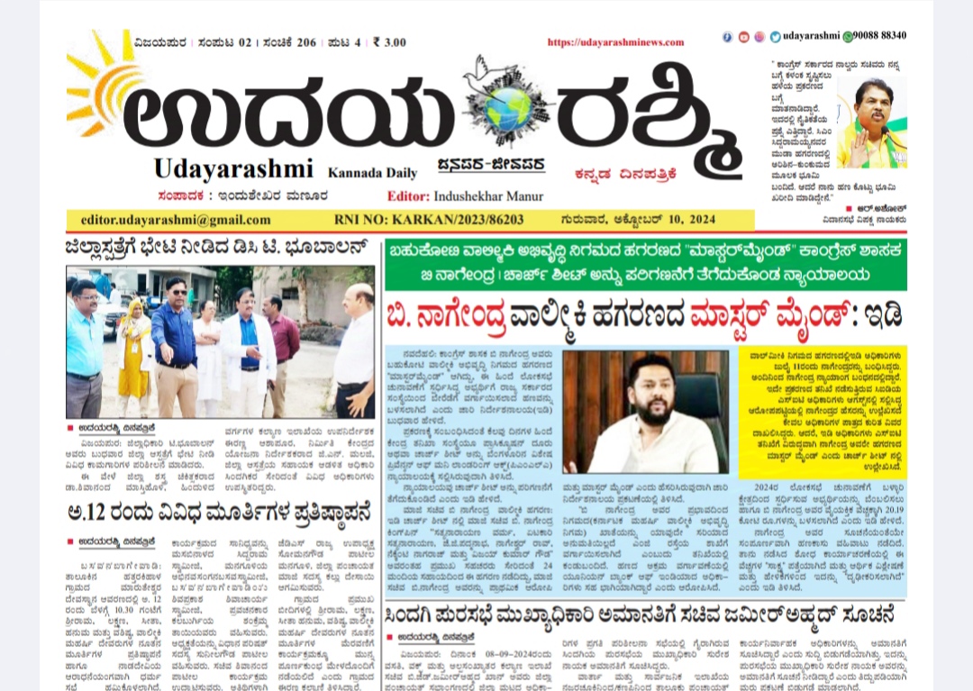 Udayarashmi kannada daily newspaper