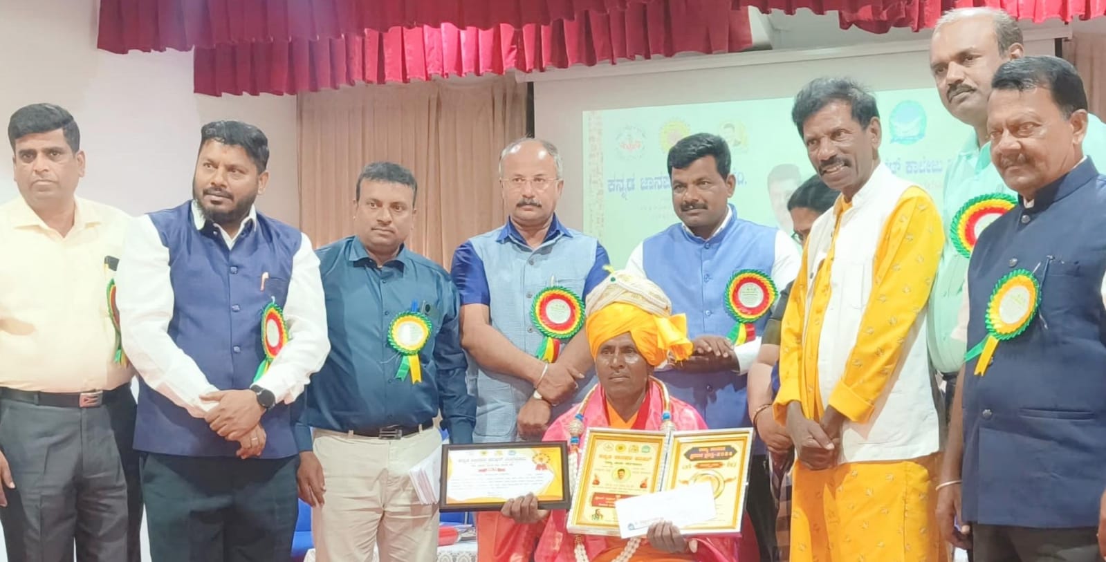 ಕೊಲ್ಹಾರ: ಕನ್ನಡ ಜಾನಪದ ಪರಿಷತ್ ರಾಜ್ಯ ಘಟಕ ಕೊಡಮಾಡುವ ” ಜಾನಪದ ಪ್ರಪಂಚ ” ಪ್ರಶಸ್ತಿಯನ್ನು ಬೆಂಗಳೂರಿನ ಸೇಂಟ್ ಕ್ಲಾರೆಟ್ ಕಾಲೇಜು ಸಭಾಂಗಣದಲ್ಲಿ ಕ ಜಾ ಪ ರಾಜ್ಯಾಧ್ಯಕ್ಷ ಡಾ ಎಸ್ ಬಾಲಾಜಿಯವರ ಅಧ್ಯಕ್ಷತೆಯಲ್ಲಿ ವಿಜಯಪುರ ಜಿಲ್ಲೆಯ ಕೊಲ್ಹಾರ ತಾಲೂಕಿನ ಹಣಮಾಪುರ ಹಲಗೆಮಜಲು ಕಲಾವಿದ ಗಂಗಾಧರ ಬಡಿಗೇರನಿಗೆ ನೀಡಿ ಗೌರವಿಸಲಾಯಿತು.