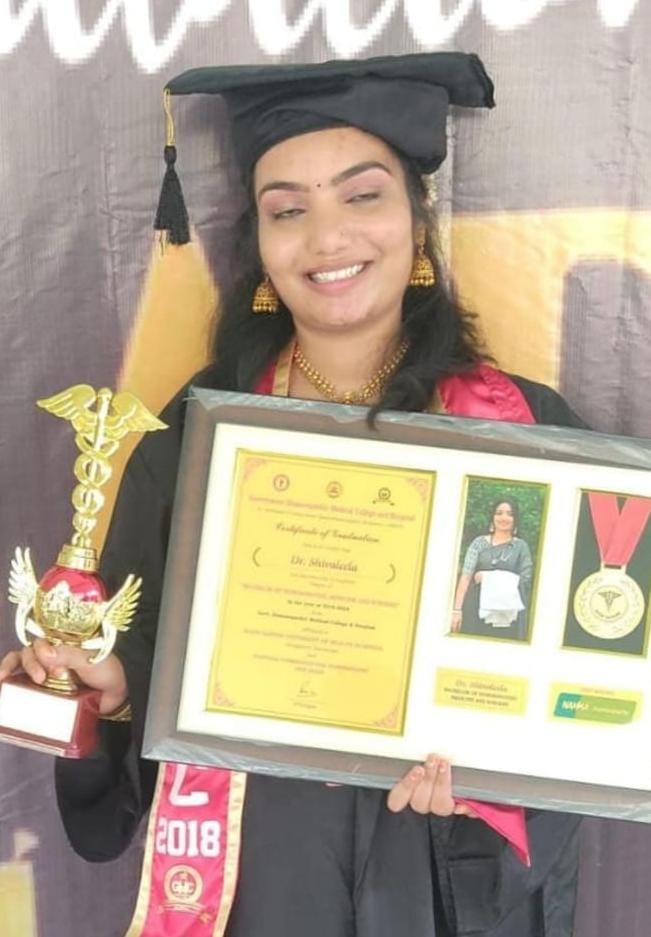 ಇತ್ತೀಚೆಗೆ ಚೌಡಯ್ಯ ಮೆಮೋರಿಯಲ್ ಹಾಲ್ ಬೆಂಗಳೂರಲ್ಲಿ, ಹೋಮಿಯೋಪತಿ ರಾಷ್ಟ್ರೀಯ ಆಯೋಗ ನವದೆಹಲಿ, ಹಾಗೂ ರಾಜೀವ್ ಗಾಂಧಿ ಆರೋಗ್ಯ ವಿಜ್ಞಾನ ವಿಶ್ವವಿದ್ಯಾಲಯ ಬೆಂಗಳೂರು, ಮತ್ತು ಸರ್ಕಾರಿ ಹೋಮಿಯೋಪತಿ ವೈದ್ಯಕೀಯ ಕಾಲೇಜು ಮತ್ತು ಆಸ್ಪತ್ರೆ ಸಹಯೋಗದಲ್ಲಿ ಜರುಗಿದ 34 ನೇ ಪದವಿ ಪ್ರಧಾನ ಸಮಾರಂಭದಲ್ಲಿ, ಡಾ ಶೈಲೇಂದ್ರ ಜಿ ಬೆಲ್ದಾಳೆ ಶಾಸಕರು ದಕ್ಷಿಣ ಮತಕ್ಷೇತ್ರ ಬೀದರ್. ಡಾ ರಿಯಾಜ್ ಬಾಷ, ಕುಲಸಚಿವರು ಮೌಲ್ಯ ಮಾಪನ ರಾಜೀವ್ ಗಾಂಧಿ ಆರೋಗ್ಯ ವಿಜ್ಞಾನಗಳ ವಿಶ್ವವಿದ್ಯಾಲಯ ಬೆಂಗಳೂರು. ಡಾ ಎ ಬಿ ಪಾಟೀಲ್ ನಿವೃತ್ತ ನಿರ್ದೇಶಕರು ಆಯುಷ್ ಇಲಾಖೆ ಬೆಂಗಳೂರು, ಡಾ ವಿ ಗುರುಪ್ರಸಾದ್ ನಿವೃತ್ತ ಪ್ರಾಚಾರ್ಯರು ಸರ್ಕಾರಿ ಹೋಮಿಯೋಪತಿ ವೈದ್ಯಕೀಯ ಕಾಲೇಜು ಮತ್ತು ಆಸ್ಪತ್ರೆ ಬೆಂಗಳೂರು, ಡಾ ರಾಜೇಶ್ವರಿ ಕೆ ಪ್ರಾಚಾರ್ಯರು ಸರ್ಕಾರಿ ಹೋಮಿಯೋಪತಿ ವೈದ್ಯಕೀಯ ಕಾಲೇಜು ಮತ್ತು ಆಸ್ಪತ್ರೆ ಬೆಂಗಳೂರು ಇವರಿಂದ ‘ಡಾಕ್ಟರ್’ ಪದವಿ ಪಡೆದರು. ಸೋದರ ಮಾಮ ಡಾ ಯಂಕನಗೌಡ ಪಾಟೀಲ್, ತಾಯಿ ಪದ್ಮಾವತಿ, ತಮ್ಮ ಶಿವಶರಣ, ಗೆಳತಿ ರೇಣುಕಾ, ಸುಂದರ ಕ್ಷಣಗಳಿಗೆ ಸಾಕ್ಷಿಯಾಗಿ ಸಂಭ್ರಮಿಸಿ, ಶುಭಹಾರೈಸಿದರು.