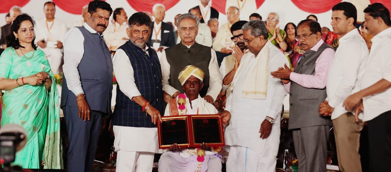 ಬಸವನಬಾಗೇವಾಡಿ: ಇಲ್ಲಿಯ ಜನಪದ ಗಾಯಕ ಬಸವರಾಜ ಸಂಗಪ್ಪ ಹಾರಿವಾಳ ಅವರಿಗೆ ಜನಪದ ಕ್ಷೇತ್ರದಲ್ಲಿ ಮಾಡಿರುವ ಸಾಧನೆ ಗುರುತಿಸಿ ರಾಜ್ಯ ಸರ್ಕಾರ ಬೆಂಗಳೂರಿನಲ್ಲಿ ಶುಕ್ರವಾರ ಸಂಜೆ ಜರುಗಿದ ಕನ್ನಡ ರಾಜ್ಯೋತ್ಸವ ಸಮಾರಂಭದಲ್ಲಿ ಪ್ರಸಕ್ತ ಸಾಲಿನ ಕನ್ನಡ ರಾಜ್ಯೋತ್ಸವ ಪ್ರಶಸ್ತಿಯನ್ನು ಮುಖ್ಯಮಂತ್ರಿ ಸಿದ್ದರಾಮಯ್ಯನವರು ಪ್ರದಾನ ಮಾಡಿದರು.