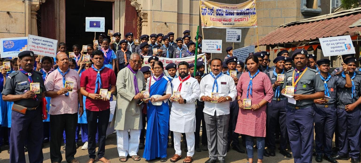ವಿಜಯಪುರ: ಶ್ರೀ ಸರ್ವಜ್ಞೇಂದ್ರ ಸರಸ್ವತಿ ಪ್ರತಿಷ್ಠಾನದ ಸಹಯೋಗದಲ್ಲಿ ನಡೆಯುತ್ತಿರುವ ಭಗವದ್ಗೀತಾ ಅಭಿಯಾನದ ಹಿನ್ನೆಲೆಯಲ್ಲಿ ಸ್ಕೌಟ್ಸ್ ಮತ್ತು ಗೈಡ್ಸ್ ವಿದ್ಯಾರ್ಥಿಗಳಿಗೆ ೧ ಸಾವಿರಕ್ಕೂ ಹೆಚ್ಚು ಭಗವದ್ಗೀತೆಯ ಪ್ರತಿಗಳನ್ನು ಉಚಿತವಾಗಿ ವಿತರಿಸಲಾಯಿತು.