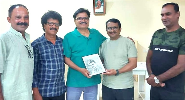 ಚಿಕ್ಕಬಳ್ಳಾಪುರ ದ ಹಿರಿಯ ಕಲಾವಿದ ಸಂತೋಷಕುಮಾರ ಎನ್.ಆರ್ ತಮ್ಮ ಸನ್ಮಿತ್ರ, ’ಉದಯರಶ್ಮಿ’ ಸಂಪಾದಕ ಇಂದುಶೇಖರ ಮಣೂರ ಅವರಿಗೆ ತಾವು ಅಭಿಮಾನದಿಂದ ಸ್ನೇಹದ್ಯೋತಕವಾಗಿ ರಚಿಸಿದ ಅವರದೇ ಭಾವಚಿತ್ರದ ಕಲಾಕೃತಿಯನ್ನು ನೀಡಿ ಗೌರವಿಸಿದರು.