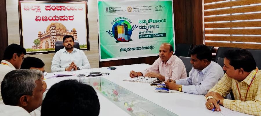ವಿಜಯಪುರ: ಜಿಲ್ಲೆಯಲ್ಲಿ ವಿಶ್ವ ಶೌಚಾಲಯ ದಿನಾಚರಣೆ ಅಂಗವಾಗಿ ಅಂದದ ಶೌಚಾಲಯ-ಆನಂದದ ಜೀವನ ಎಂಬ ಘೋಷವಾಕ್ಯದೊಂದಿಗೆ ನ.೧೯ರಿಂದ ಡಿ.೧೨ರವರೆಗೆ ವಿಶೇಷ ಆಂದೋಲನವನ್ನು ಹಮ್ಮಿಕೊಳ್ಳುವ ಕುರಿತು ಮಂಗಳವಾರ ಜಿಲ್ಲಾ ಪಂಚಾಯತ್ ಮುಖ್ಯ ಕಾರ್ಯನಿರ್ವಹಣಾಧಿಕಾರಿ ರಿಷಿ ಆನಂದ ಅವರ ಅಧ್ಯಕ್ಷತೆಯಲ್ಲಿ ಜಿಲ್ಲಾ ನೀರು ಮತ್ತು ನೈರ್ಮಲ್ಯ ಮಿಷನ್ ಸಮಿತಿ ಸಭೆ ಜರುಗಿತು.