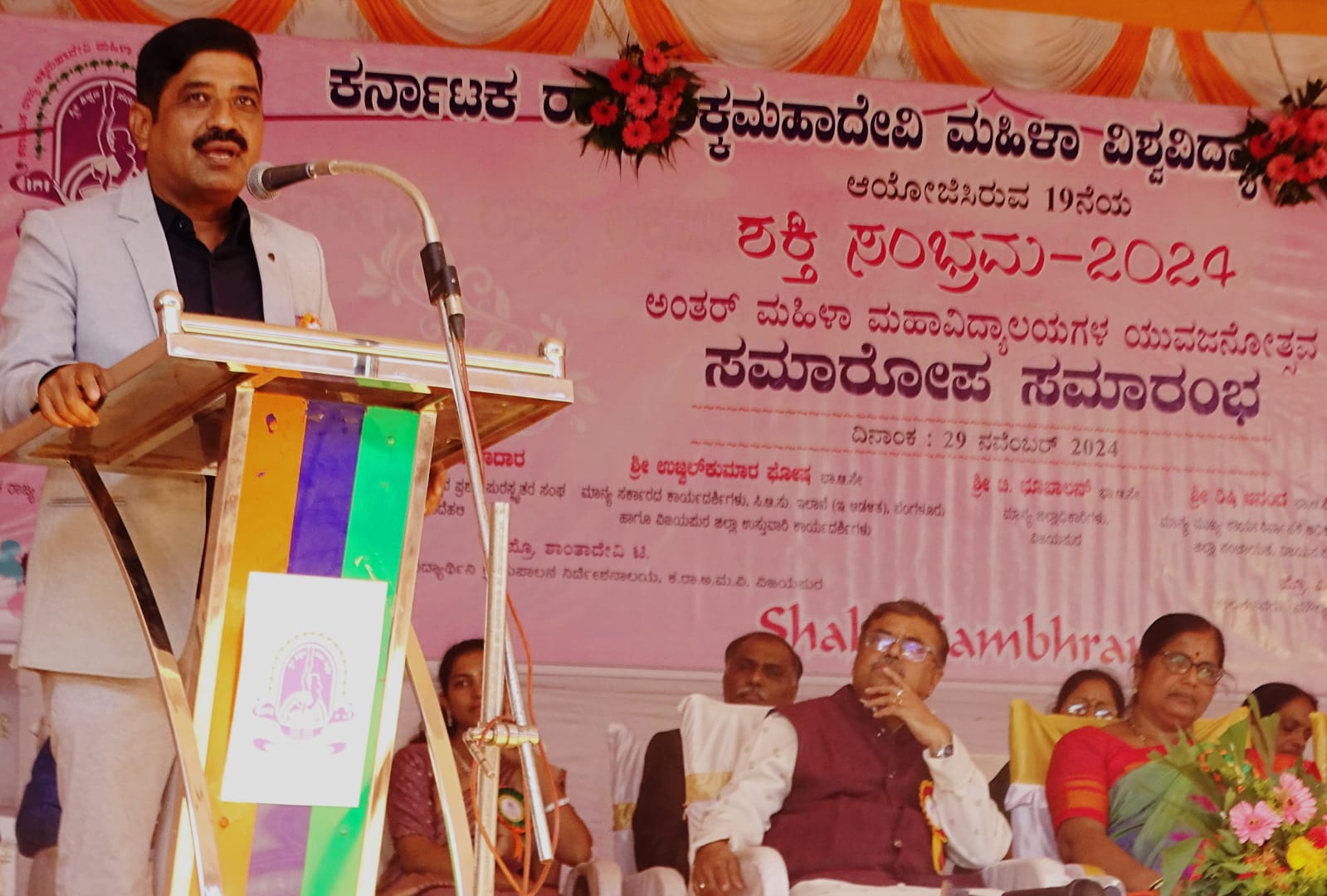 ನಗರದ ಕರ್ನಾಟಕ ರಾಜ್ಯ ಅಕ್ಕಮಹಾದೇವಿ ಮಹಿಳಾ ವಿಶ್ವವಿದ್ಯಾನಿಲಯದಲ್ಲಿ ಆಯೋಜಿಸಿರುವ ೧೯ನೇ ಅಂತರ್ ಮಹಾವಿದ್ಯಾಲಯಗಳ ಯುವಜನೋತ್ಸವ ‘ಶಕ್ತಿ ಸಂಭ್ರಮ’ ಸಮಾರೋಪ ಸಮಾರಂಭದಲ್ಲಿ ಮುಖ್ಯ ಅತಿಥಿಯಾಗಿ ಅವರು ಮಾತನಾಡಿದರು.