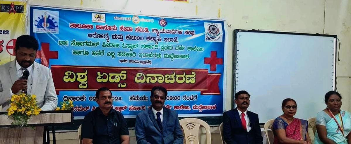 ಪಟ್ಟಣದ ಆಲಮಟ್ಟಿ ರಸ್ತೆಯಲ್ಲಿರುವ ಶಾ ಸೋಗಮಲ್ ಓಸ್ವಾಲ್ ಸರ್ಕಾರಿ ಪ್ರಥಮ ದರ್ಜೆ ಕಾಲೇಜಿನಲ್ಲಿ ತಾಲೂಕು ಕಾನೂನು ಸೇವಾ ಸಮಿತಿ, ನ್ಯಾಯವಾದಿಗಳ ಸಂಘ, ಆರೋಗ್ಯ ಮತ್ತು ಕುಟುಂಬ ಕಲ್ಯಾಣ ಇಲಾಖೆ, ಓಸ್ವಾಲ್ ಪ್ರಥಮ ದರ್ಜೆ ಕಾಲೇಜು ಹಾಗೂ ಇತರ ಎಲ್ಲ ಸರ್ಕಾರಿ ಇಲಾಖೆಗಳ ಸಂಯುಕ್ತ ಅಶ್ರಯದಲ್ಲಿ ಹಮ್ಮಿಕೊಳ್ಳಲಾಗಿದ್ದ ವಿಶ್ವ ಏಡ್ಸ್ ದಿನಾಚರಣೆ ಕಾರ್ಯಕ್ರಮವನ್ನು ಉದ್ಘಾಟಿಸಿ ಅವರು ಮಾತನಾಡಿದರು.