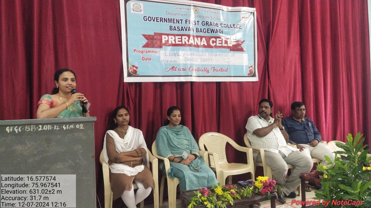 ಜಿಲ್ಲೆಯ ಬಸವನ ಬಾಗೇವಾಡಿಯ ಸರ್ಕಾರಿ ಪ್ರಥಮ ದರ್ಜೆ ಕಾಲೇಜಿನಲ್ಲಿ ಆಂತರಿಕ ಗುಣಮಟ್ಟ ಭರವಶಕೋಶ (lQAC)ದಡಿಯಲ್ಲಿ ಪ್ರೇರಣ ಘಟಕ, ಮಹಿಳಾ ಘಟಕ ಮತ್ತು ಲೈಂಗಿಕ ಕಿರುಕುಳ ತಡೆ ಸಮಿತಿ ಗಳ ಸಹಯೋಗದೊಂದಿಗೆ ಡಿ.೭ರಂದು ನಡೆದ ಪ್ರೇರಣ ಘಟಕದ ಉದ್ಘಾಟನೆ ಮತ್ತು “ಲಿಂಗತ್ವದ ಅರಿವು ಮತ್ತು ಕಾನೂನು” ಎಂಬ ವಿಶೇಷ ಉಪನ್ಯಾಸವನ್ನು ಪ್ರೇರಣ ಘಟಕದ ಸಂಚಾಲಕಿ ಪ್ರೊ.ಮಮತ ಎನ್ ಹಾಗೂ ಮಹಿಳಾ ಘಟಕದ ಸಂಚಾಲಕಿ ಪ್ರೊ.ವಿಜಯಲಕ್ಷ್ಮಿ ರವರು ಆಯೋಜಿಸಿದ್ದ ಕಾರ್ಯಕ್ರಮದಲ್ಲಿ ಅವರು ಸಂಪನ್ಮೂಲ ವ್ಯಕ್ತಿಯಾಗಿ ಪಾಲ್ಗೊಂಡು”ಲಿಂಗತ್ವದ ಅರಿವು ಮತ್ತು ಕಾನೂನು” ಎಂಬ ವಿಷಯದ ಕುರಿತು ವಿಶೇಷ ಉಪನ್ಯಾಸ ನೀಡಿದರು.