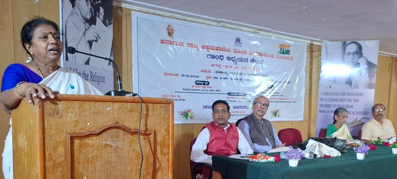ನಗರದ ಕರ್ನಾಟಕ ರಾಜ್ಯ ಅಕ್ಕಮಹಾದೇವಿ ಮಹಿಳಾ ವಿಶ್ವವಿದ್ಯಾನಿಲಯದ ಗಾಂಧಿ ಅಧ್ಯಯನ ಕೇಂದ್ರ ಮತ್ತು ಆಗಸ್ಟ್ ಕ್ರಾಂತಿ ಟ್ರಸ್ಟ್ ಸಹಯೋಗದಲ್ಲಿ ಶನಿವಾರ ಆಯೋಜಿಸಿದ್ದ ‘ಮಹಾತ್ಮಾ ಗಾಂಧಿ ಮತ್ತು ಭಾರತೀಯ ಮಹಿಳೆ’ ಎಂಬ ದತ್ತಿ ಉಪನ್ಯಾಸ ಕಾರ್ಯಕ್ರಮದಲ್ಲಿ ಅವರು ಮಾತನಾಡಿದರು.