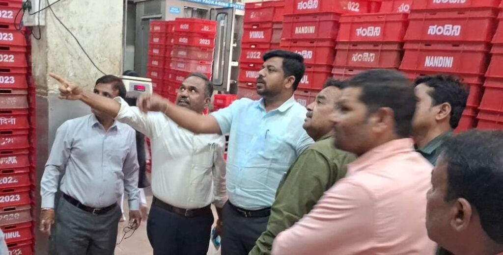 ಹಾಲಿನ ಪೌಡರ್ ಪೂರೈಸುವ ಬಾಗಲಕೋಟ ಜಿಲ್ಲೆಯ ರಬಕವಿ-ಬನಹಟ್ಟಿ ತಾಲೂಕಿನ ಆಸಂಗಿ ಗ್ರಾಮದ ವ್ಯಾಪ್ತಿಯಲ್ಲಿರುವ ಡೆಂಪೋ ಡೈರಿಯಿಂದ ಪೂರೈಕೆಯಾಗುವ ವಾಹನದ ಮಾಹಿತಿ, ಹಾಲಿನ ಪುಡಿಯ ಪ್ರಮಾಣವನ್ನು ಮತ್ತು ಕರ್ನಾಟಕ ಹಾಲು ಒಕ್ಕೂಟ ಮಂಡಳಿ(ಕೆ.ಎಮ್.ಎಫ್ ಘಟಕ)ಯಿಂದ ಸಲ್ಲಿಸಿರುವ ಬೇಡಿಕೆಯ ಪ್ರಮಾಣವನ್ನು ತಾಳೆ ಮಾಡಿದರು. ಹಾಲಿನ ಪುಡಿ ಶಾಲೆಗಳಿಗೆ ಪೂರೈಸಲು ಗಣಕಯಂತ್ರದಲ್ಲಿ ಮಾರ್ಗ ನಕ್ಷೆ ಹಾಗೂ ಬೇಡಿಕೆಯ ವಿವರಗಳನ್ನು ಖುದ್ದಾಗಿ ವೀಕ್ಷಿಸಿದರು. ಶಾಲೆಗಳಿಂದ ಹಾಲಿನ ಪೌಡರ್ ಬೇಡಿಕೆ ಪಡೆಯುವಾಗ ಅನುಸರಿಸುವ ಕ್ರಮಗಳನ್ನು ಮತ್ತು ಹಾಲಿನ ಪೌಡರ್ ಪ್ರಮಾಣ ನಿಗದಿಪಡಿಸುವ ವಿಧಾನಗಳ ಕುರಿತು ಪರಿಶೀಲಿಸಿದರು. ಅಲ್ಲದೇ ಈ ಕೈಗಾರಿಕಾ ಘಟಕದಲ್ಲಿ ತಯಾರಿಸುವ ಉತ್ಪನ್ನಗಳು, ಯಂತ್ರಗಳು, ಉತ್ಪನ್ನಗಳನ್ನು, ಶಿಥೀಲೀಕರಣ ಮಾಡುವ ಕೊಠಡಿ, ಉತ್ಪಾದಿಸಿರುವ ಉತ್ಪನ್ನಗಳು, ಘಟಕದ ಹೊರಾಂಗಣ ಹಾಗೂ ಒಳಾಂಗಣ ಆವರಣಗಳು ಹಾಗೂ ಘಟಕದಲ್ಲಿ ಕರ್ತವ್ಯನಿರ್ವಹಿಸುತ್ತಿರುವ ಸಿಬ್ಬಂದಿ ವಿವರಗಳನ್ನು ಪರಿಶೀಲಿಸಿದರು.