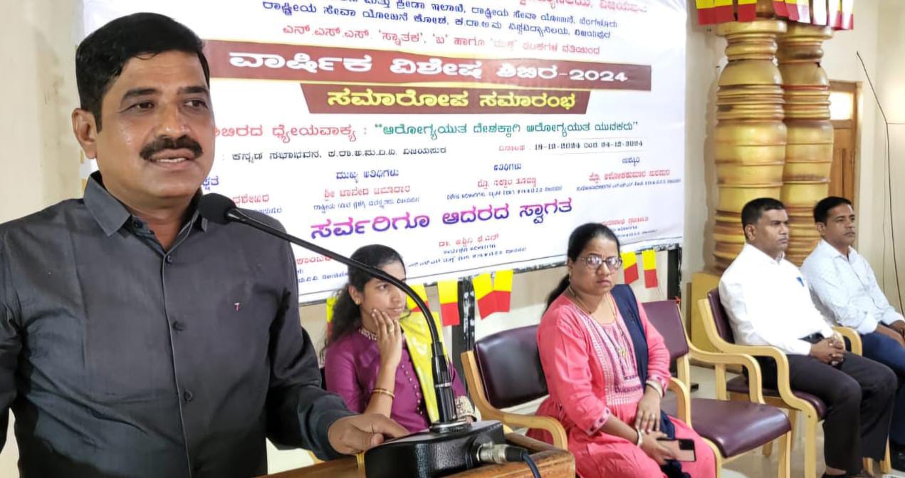 ನಗರದ ಕರ್ನಾಟಕ ರಾಜ್ಯ ಅಕ್ಕಮಹಾದೇವಿ ಮಹಿಳಾ ವಿಶ್ವವಿದ್ಯಾನಿಲಯ ಎನ್.ಎಸ್.ಎಸ್ ಸ್ನಾತಕ ‘ಬ’ ಹಾಗೂ ಮುಕ್ತ ಘಟಕ, ಯುವ ಸಬಲೀಕರಣ ಮತ್ತು ಕ್ರೀಡಾ ಇಲಾಖೆ ರಾಷ್ಟ್ರೀಯ ಸೇವಾ ಯೋಜನೆ ಬೆಂಗಳೂರು, ಹಾಗೂ ರಾಷ್ಟ್ರೀಯ ಸೇವಾ ಯೋಜನೆ ಕೋಶದ ವತಿಯಿಂದ ಮಂಗಳವಾರ ಆಯೋಜಿಸಿದ್ದ ಏಳು ದಿನಗಳ ವಾರ್ಷಿಕ ವಿಶೇಷ ಶಿಬಿರದ ಸಮಾರೋಪ ಸಮಾರಂಭದಲ್ಲಿ ಅವರು ಮಾತನಾಡಿದರು.